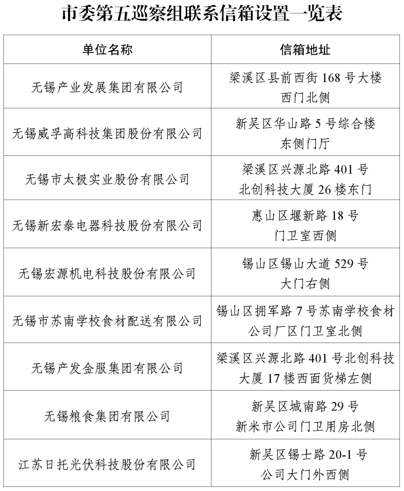 聯系信箱:無錫產業發展集團有限公司及部分全資、控股企業聯系信箱設置地址詳見“市委第五巡察組聯系信箱設置一覽表”。