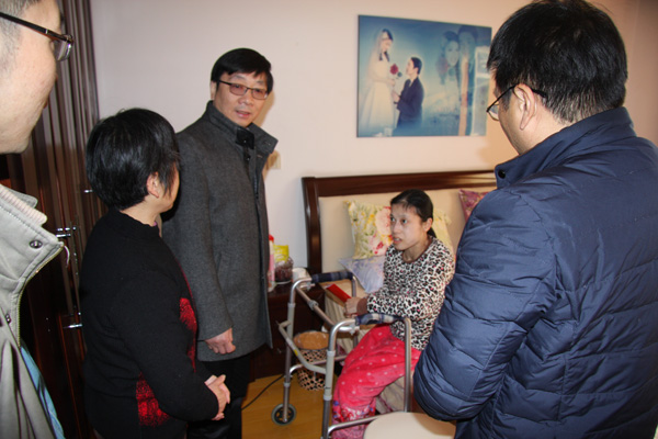 在此次“陽光扶貧”活動中,與集團領導幫扶結對的是家住錢橋街道的85歲淋巴癌老人,隨身帶著尿袋,老夫妻每月拿著低保過日子,3個月來,這已是第二次赴老兩口家中看望。另外走訪慰問的4戶分別來自威孚高科、朝陽集團、華鵬瓶蓋、集團本部的貧困大病職工,集團領導叮囑大家要充滿信心,安心過節,往后的每一天都會越來越好,并要求各單位工會要將服務送到家、關心落實到人,確保職工享受到應有的醫療保障。